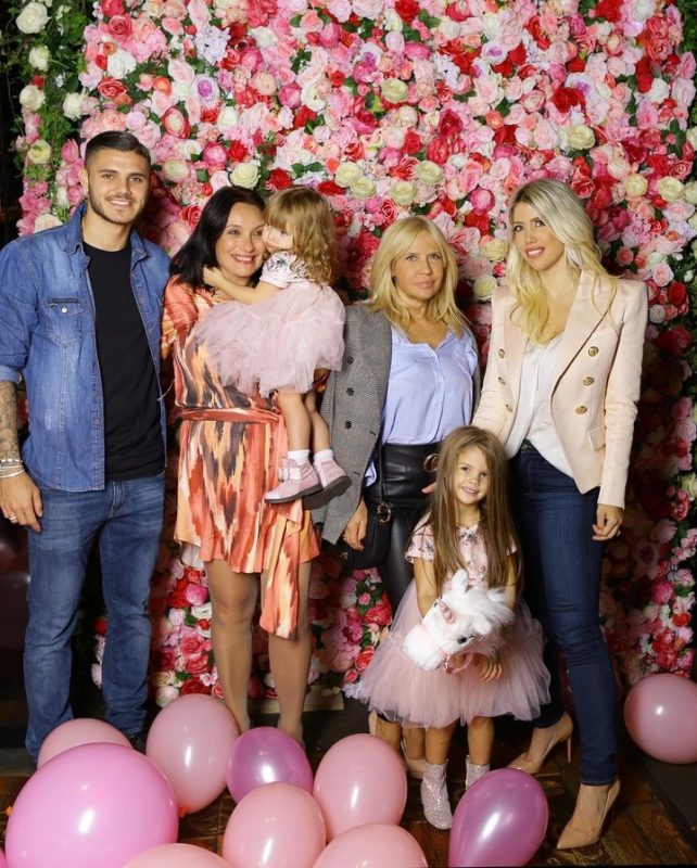 Mauro Icardi y Wanda Nara junto a sus respectivas madres en el cumpleaños de Isabella.