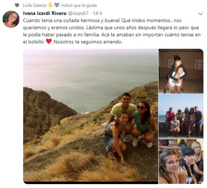 “¡Cuando tenía una cuñada hermosa y buena! Qué lindos momentos… nos queríamos y éramos unidos. Lástima que unos años después llegara lo peor que le podía haber pasado a mi familia. Acá te amaban sin importar cuánto tenías en el bolsillo. Nosotros te seguimos amando“, escribió Ivana junto a las fotos con Patricia Rubio, ex pareja de su hermano y también ex amiga de Wanda.