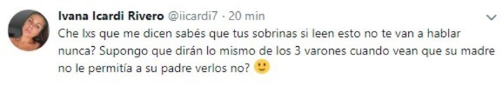 Luego de mostrar estas fotos con su ex cuñada Ivana recibió todo tipo de mensajes en su cuenta de Twitter, desde comentarios alentadores sobre su familia y el vínculo con su hermano, que hoy está roto, hasta críticas por exponer así a la mamá de sus sobrinas.
