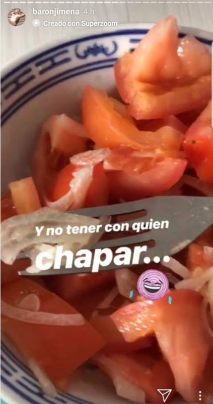 Luego, desde Instagram Stories compartió la imagen de una ensalada de tomate con bastante cebolla y agregó: “Y no tenés con quien chapar”.