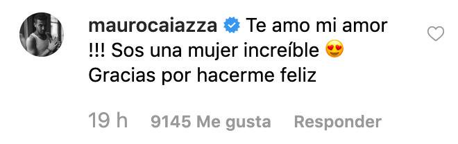 Contento y, principalmente, emocionado por la significativa foto, el bailarín le contestó a su novia con la misma ternura: “Te amo mi amor, sos una mujer increíble. Gracias por hacerme muy feliz“.