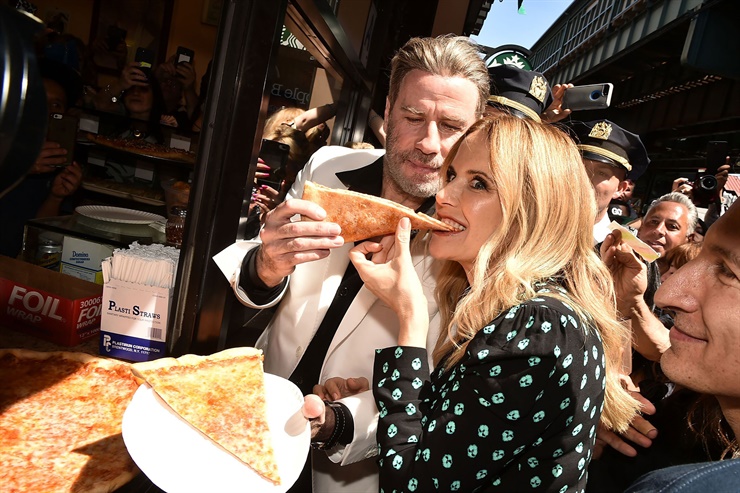 Kelly, la esposa de Travolta, prueba la afamada pizza de Lenny
