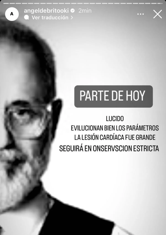 “Está Lúcido. Evoluciona bien a los parámetros. La lesión cardíaca fue grande. Seguirá en observación estricta”, detalló el conductor de LAM en una historia en su cuenta de Instagram.