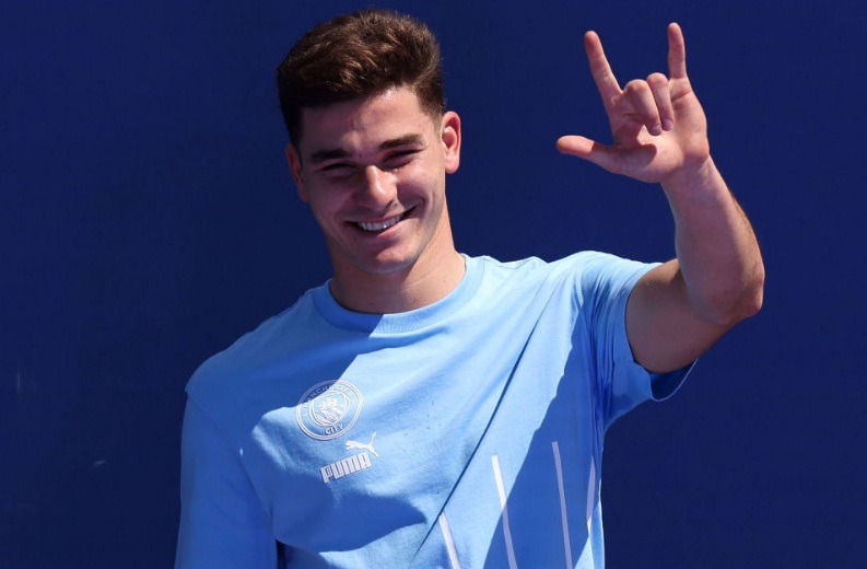 “Muchas gracias, si bien ya sabía hace un tiempo que iba a venir, estaba muy entusiasmado y con muchas ganas. Voy a dar lo mejor para ayudar a mis compañeros y estar a disposición del técnico (Josep Guardiola). Es una gran ciudad, llegué y traje el sol, je. Muy contento, muy feliz y muchas ganas de empezar a jugar”, dijo Álvarez.
