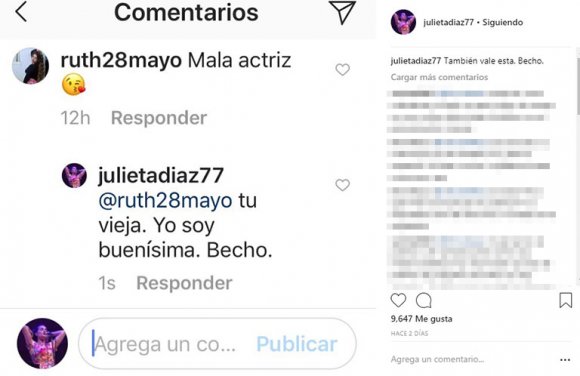 Luego, otra persona le escribió “mala actriz” y Julieta le respondió : “Tu vieja. Yo soy buenísima. Becho”.