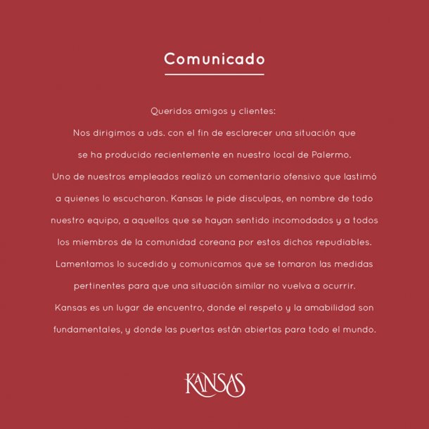 El hecho fue denunciado por las redes sociales y rápidamente toda la comunidad coreana se unió contra Kansas. Así se sumaron más testimonios de ciudadanos coreanos que dijeron haber vivido episodios similares.