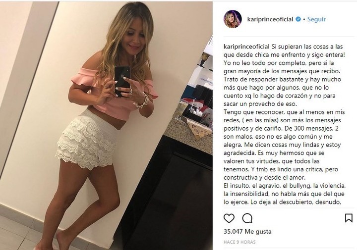 En un principio, la charla se centró en el maltrato que la artista padece día a día en las redes sociales. Sin embargo, Karina “La Princesita” optó por dejarlo atrás e ir más profundo. “Puse una publicación con respecto a lo de las redes sociales, pero no fue el momento donde más me trataron mal. Ya pasé eso… Vengo de un tema fuerte de bullying desde el colegio. Fuerte, que me traumó demasiado e hizo que yo creciera con mucha inseguridad en todo lo que hago: en mi vida personal y en mi trabajo”.