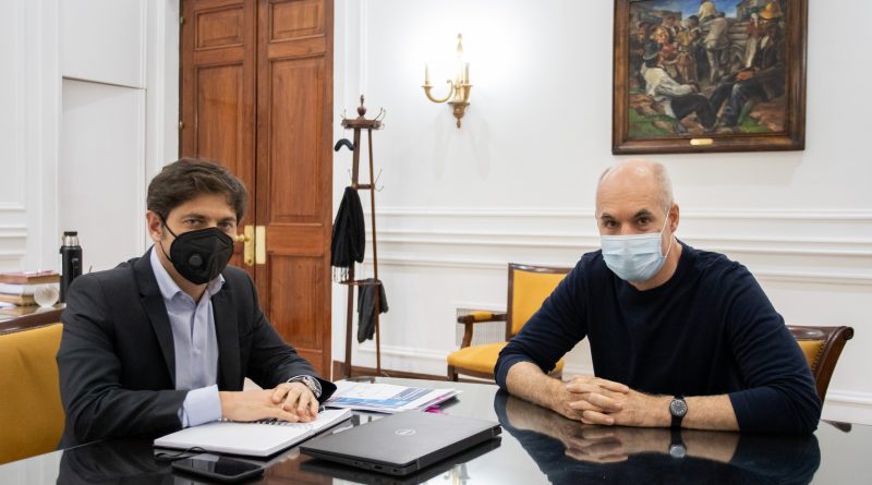 El gobernador de la provincia de Buenos Aires, Axel Kicillof, y el jefe de Gobierno de la Ciudad, Horacio Rodríguez Larreta, ofrecieron este viernes una conferencia de prensa en el Salón Dorado de la Gobernación de la Provincia. Los mandatarios se reunieron para analizar la situación en torno a la creciente cantidad de casos de Covid-19 en el AMBA en una mesa técnica de la que participación funcionarios de las dos jurisdicciones.
