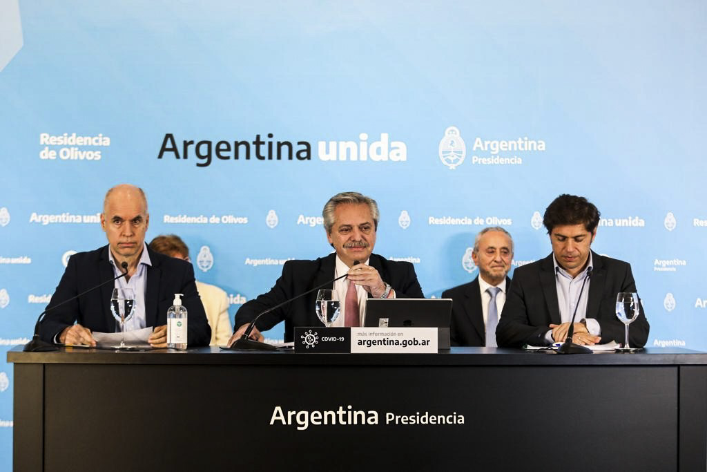 También anunció que serán autorizadas las salidas con niños aunque sólo para hacer compras, en un formato distinto al que implementará la Ciudad de Buenos Aires, a cargo de Horacio Rodríguez Larreta, también presente en la conferencia de prensa junto a los epidemiólogos Mirta Roses y Pedro Cahn, integrantes del comité de expertos que asesora al Presidente sobre la pandemia de coronavirus.