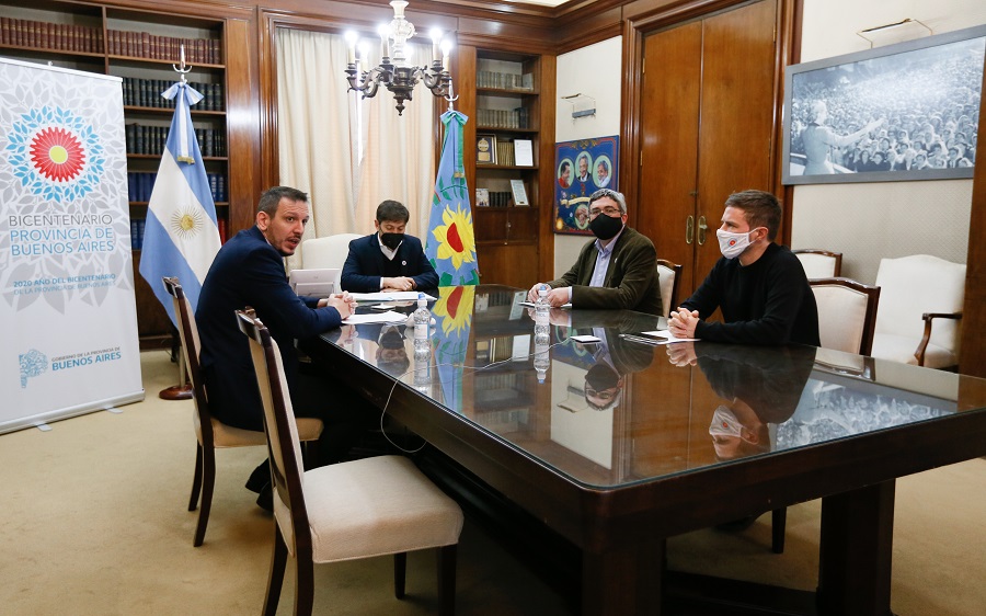 El gobernador de la provincia de Buenos Aires, Axel Kicillof, y el presidente del Banco Provincia, Juan Cuattromo, encabezaron este jueves el primer encuentro “Vincular” del Bapro, un espacio de reuniones comerciales virtuales creado para potenciar las exportaciones bonaerenses y brindar a las empresas nuevas oportunidades de negocios en mercados vecinos, como Brasil, Uruguay y Chile.