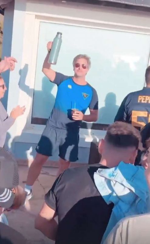 El cantante disfrutó de la música que pasó un DJ ubicado al borde de la playa. Además, se divirtió con sus amigos, mientras todo el grupo que lo rodea bailaba. “Áspero”, escribió L-Gante, junto a una foto con una botella de whisky que se veía helada.