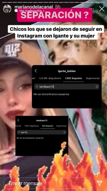 L-Gante y Tamara Báez se dejaron de seguir en redes