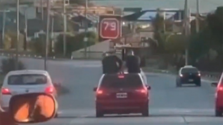La ANSV pidió suspender a conductor que llevó a dos personas sentadas sobre el techo de su auto