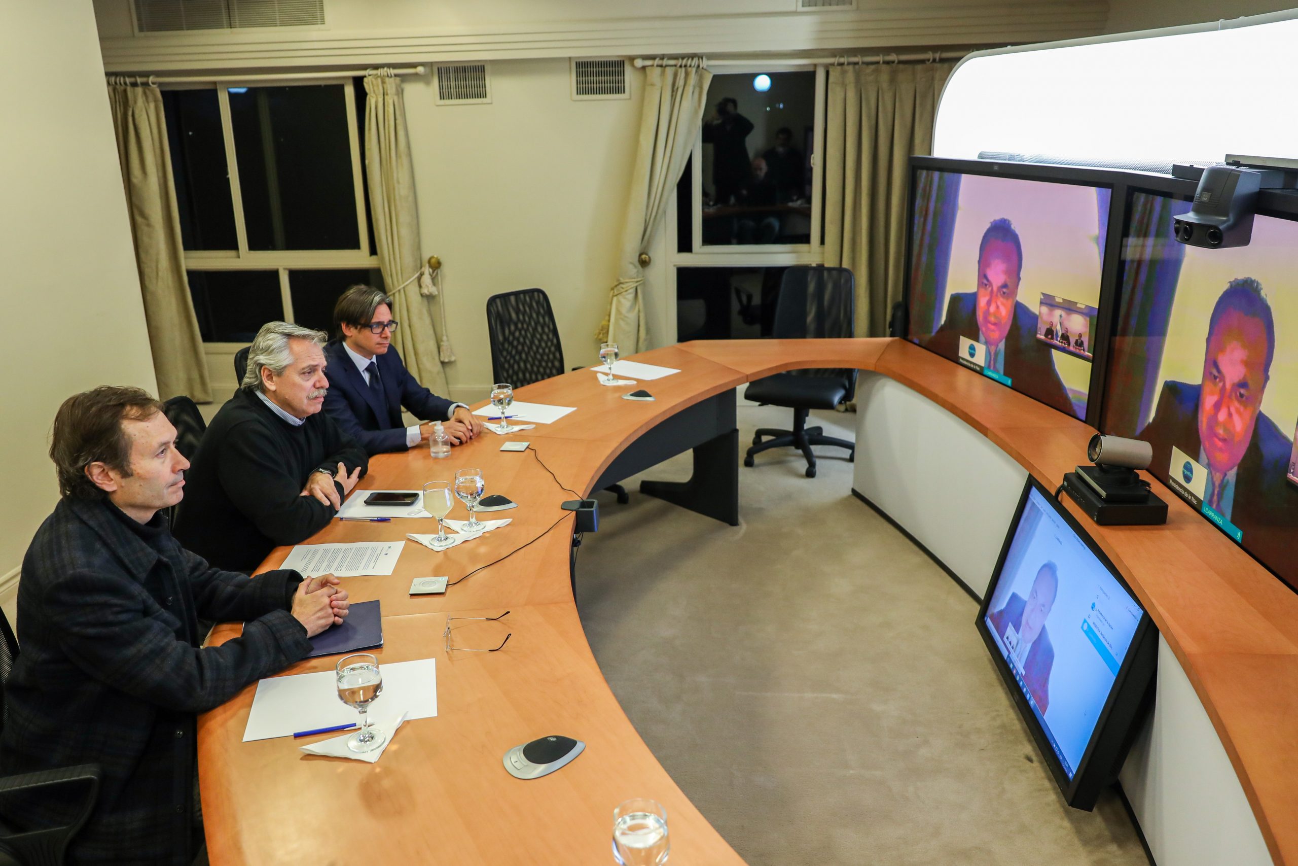 Participaron también de la comunicación, el secretario de asuntos estratégicos, Gustavo Béliz, y por el subsecretario de Relaciones Financieras Internacionales para el Desarrollo, Christian Asinelli.