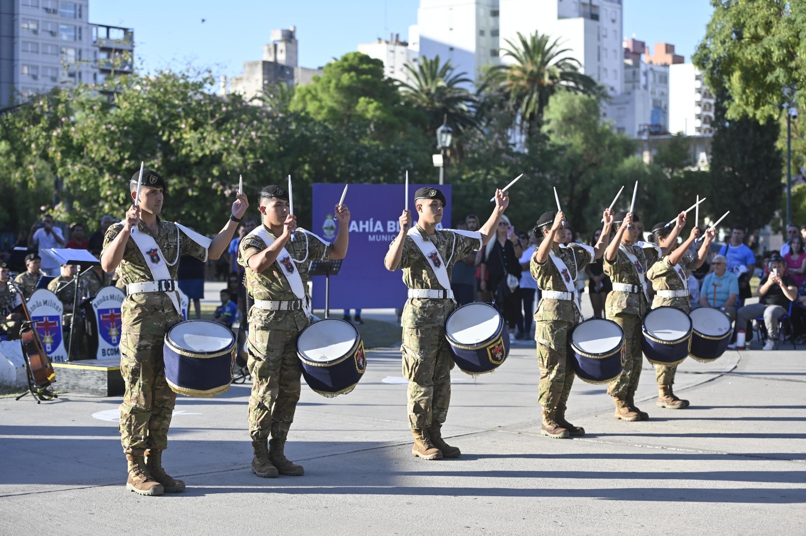 Con el apoyo del Municipio de Bahía Blanca y una gran convocatoria, la banda del batallón 181 de Comunicaciones, a cargo del capitán maestro de Banda, Osvaldo Ismael Mamani, brindó un concierto en la Plaza Rivadavia.