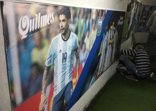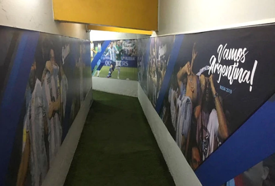 Con imagenes de Banega, Icardi, y hasta un ex River como Mascherano entre otros, el tunel, vestuario y hasta el jacuzzi donde se relajan post partido junto con las duchas, se encuentran empapelados con ellos vistiendo la camiseta albiceleste.