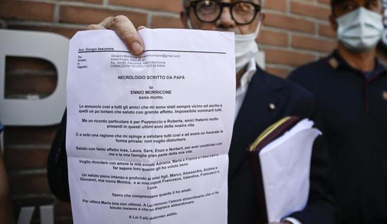 “Yo, Ennio Morricone, he muerto. Lo anuncio así a todos los amigos que siempre me fueron cercanos y también a esos un poco lejanos que despido con gran afecto“, empieza la misiva. El oscarizado compositor explica que solo hay una razón para despedirse de este modo: “no quiero molestar“.