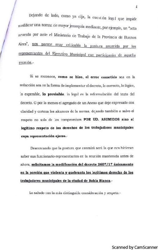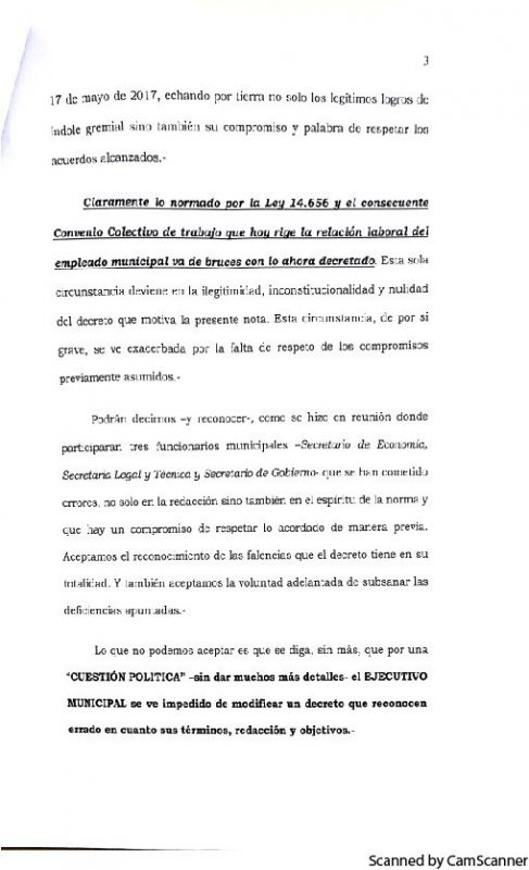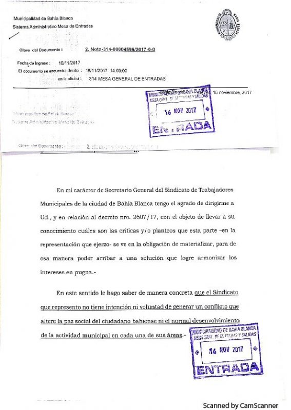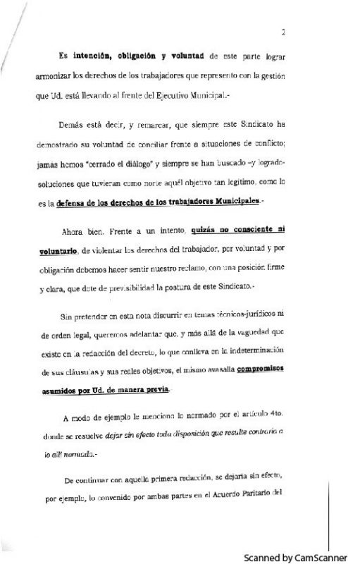 En medio del conflicto entre el Sindicato de Empleados Municipales y el gobierno local, el titular del gremio le envió una nota al intendente municipal. ESTA ES: