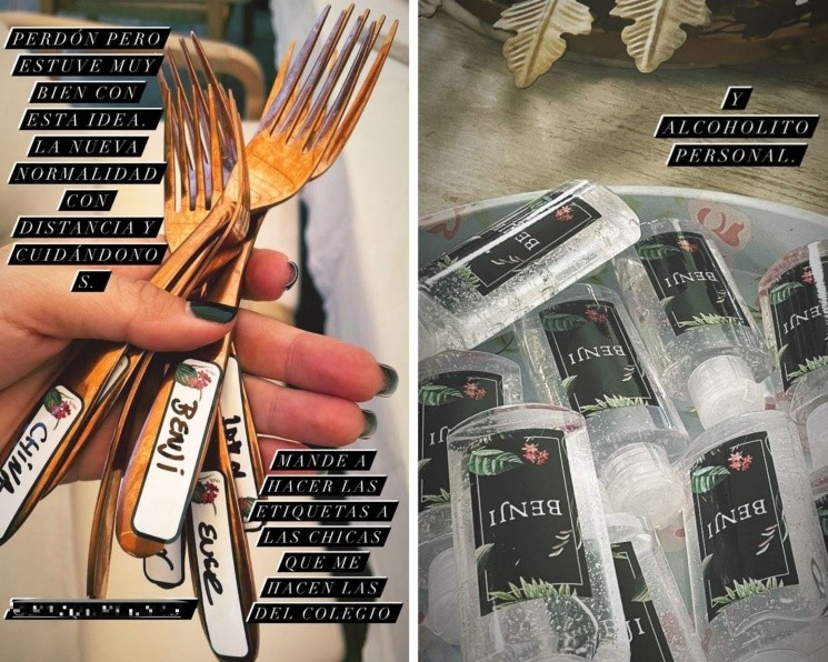 Además, la China mostró parte de la especial celebración que organizó para Vicuña que en el marco de la pandemia incluyó cubiertos personalizados y alcohol en gel para cada uno de los pocos invitados.