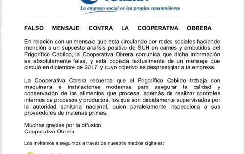 La cadena de supermercados cooperativa desmiente categóricamente los mensajes enviados por WhatsApp donde hablan de comida en mal estado vendida en las sucursales de la de la mencionada cadena bahiense
