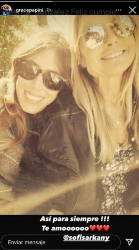 En la noche del domingo, la madre de la joven, Graciela Papini publicó en la noche del domingo una foto en su cuenta de Instagram en la que aparece junto con Sofía, abrazadas, y manifestó: “Así para siempre, te amo“.
