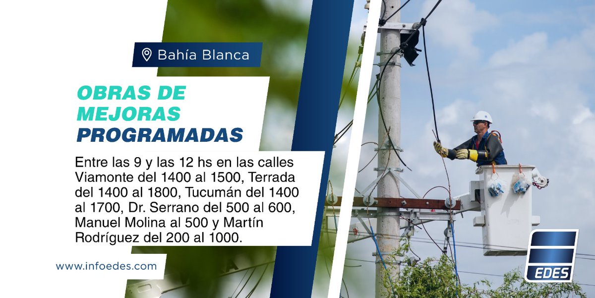 La empresa EDES anunció tres cortes de energía para este jueves, por tareas de mejoras y mantenimiento.