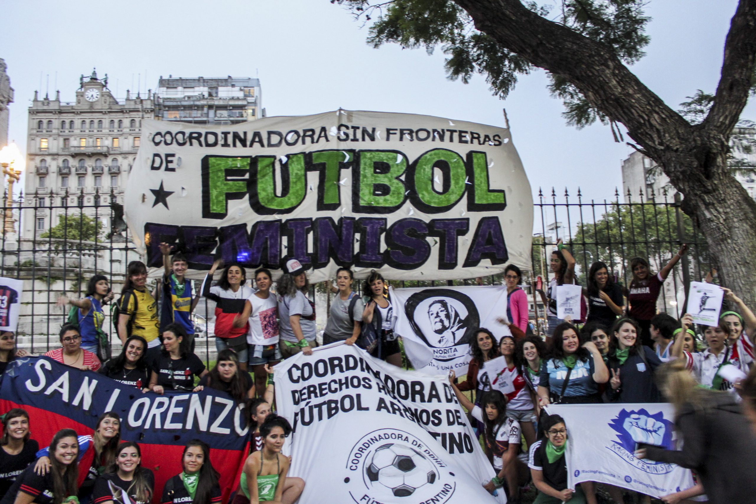 Esa agrupación nació en 2019 y es uno de los muchos espacios que compone la Coordinadora Sin Fronteras de Fútbol Feminista, una organización que se creó en el Encuentro Nacional de Mujeres en Trelew en 2018 y que nuclea a jugadoras de todas la edades, hinchas, dirigentas y DT’s. La Coordinadora, además, adhiere al Aborto Legal, Seguro y Gratuito.
