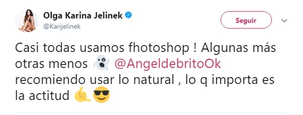 Luego, agregó: “Casi todas usamos Photoshop. Algunas más, otras menos. Recomiendo usar lo natural, lo que importa es la actitud”.