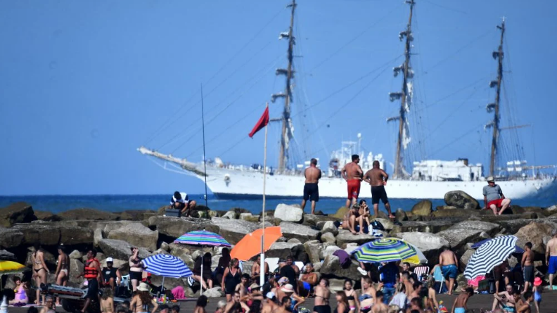 La Fragata Libertad llegó al puerto de Mar del Plata y luego parte hacia Coronel Rosales