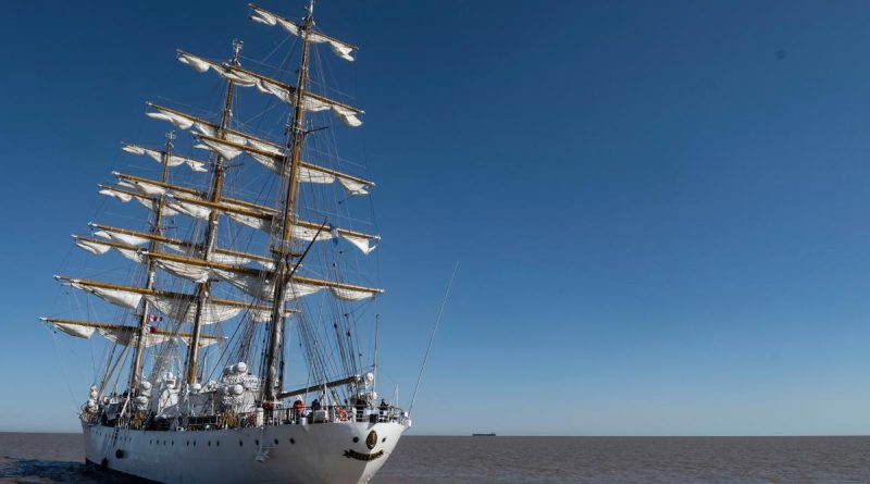 El buque escuela de la Armada Argentina, que participó durante varios días por el 150 aniversario de la ciudad de Mar del Plata, tras llevar a cabo la navegación, amarró en la tarde de ayer en uno de los muelles de Puerto Belgrano, próximo a la localidad de Punta Alta.