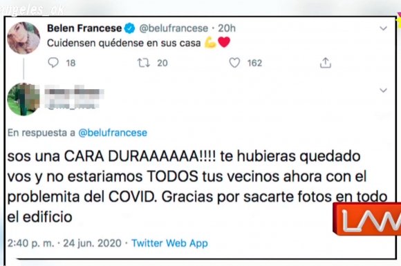 La furiosa reacción de una vecina de Belén Francese, luego de que la actriz se contagiara coronavirus