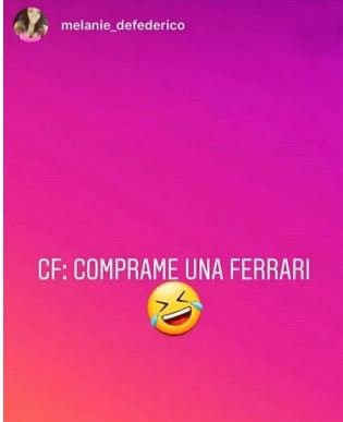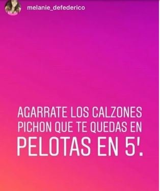 Ahora, quien tomó la palabra fue Melanie, la hermana de Matías, quien publicó dos mensaje muy extraños en su cuenta de Instagram. El primero, aparentemente dedicado a Martín Baclini, planteaba: “Agarrate los calzones, pichón, que te quedás en pelotas en 5“. El segundo, también con una aparente alusión a Cinthia, decía: “CF: Comprame una Ferrari“.