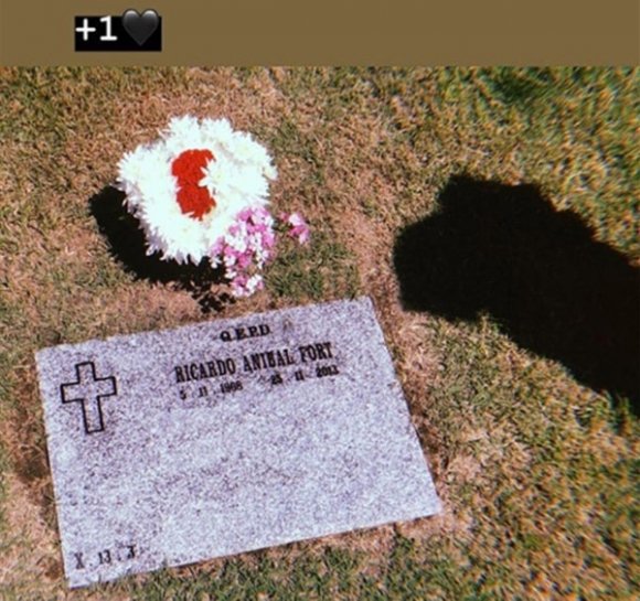 Martita (melliza de Felipe) dejó un ramo de flores junto a la lápida de su padre y publicó una elocuente instantánea en su perfil de la red social. Gustavo Martínez, expareja de Fort y actual tutor de los chicos, también recordó al “Comandante” en su día.