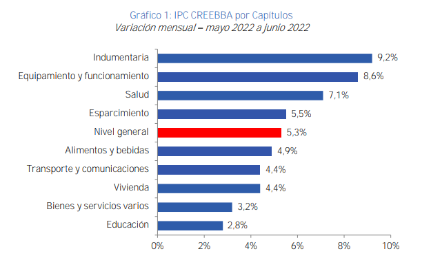 El Índice de Precios al Consumidor (IPC) elaborado por el CREEBBA aumentó un 5,3% en el mes de junio, presentando una leve desaceleración en los precios respecto al mes de mayo.