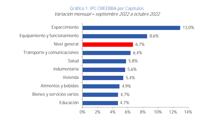 El Índice de Precios al Consumidor (IPC) elaborado por el CREEBBA aumentó un 6,7% en octubre, presentando una desaceleración respecto al mes de septiembre, que fue 7,5%.
