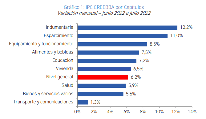 El Índice de Precios al Consumidor (IPC) que elabora el Centro Regional de Estudios Económicos de Bahía Blanca (CREEBBA) aumentó un 6,2% en julio.