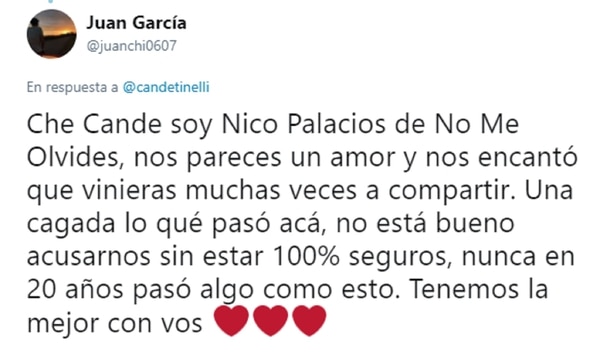 Pero este no fue el único mensaje que le dedicaron a la influencer. En Twitter, el dueño del local le respondió: “Nos parecés un amor y nos encantó que vinieras muchas veces a compartir. Una cagada lo que pasó acá. No está bueno acusarnos sin estar 100% seguros. Nunca nos pasó algo como esto. Tenemos la mejor con vos”.