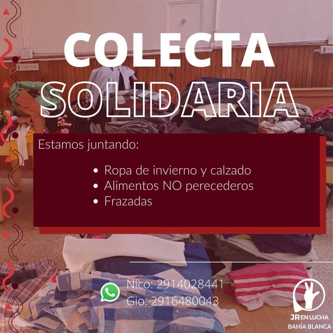 La JR en Lucha Bahía Blanca lanzó una campaña solidaria para reunir ropa de invierno y calzado, alimentos no perecederos y frazadas.