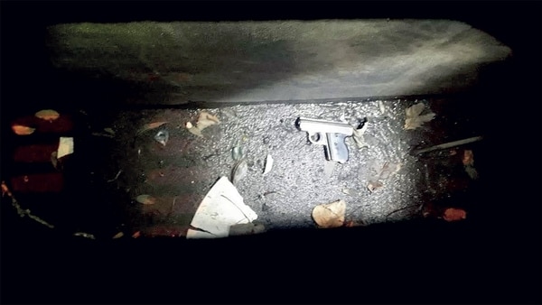 Al rastrillar el lugar, un oficial encontró dentro de una alcantarilla una pistola calibre 6.35 mm con 5 vainas servidas. El arma no estaba registrada.
