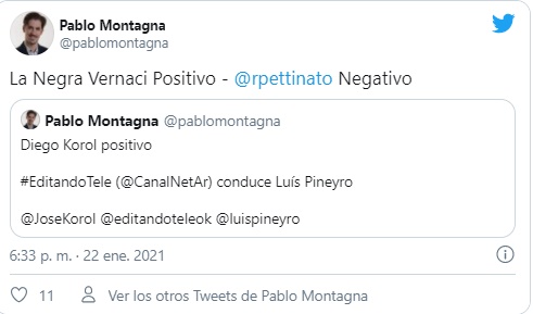 Quien dio a conocer la noticia fue Pablo Montagna en su cuenta oficial de Twitter: