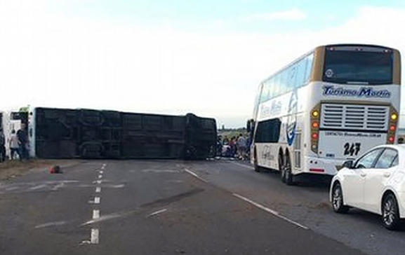 Una de las niñas accidentadas ayer en el vuelco del colectivo de dos pisos en la ruta 2 sufrió la amputación de su brazo izquierdo, se encuentra con respirador y pronóstico reservado, mientras que los restantes seis chicos que permanecen internados evolucionan favorablemente, informaron esta mañana fuentes médicas.