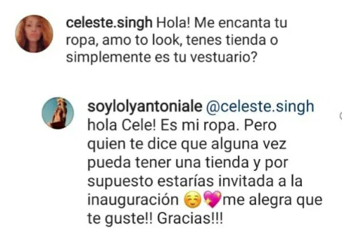 Tras su última publicación, una seguidora le elogió el vestuario y quiso saber si tenía algún lugar habilitado para la compra de los productos. Entonces, Mariana le respondió “Es mi ropa, me alegra que te haya gustado. Quién te dice que alguna vez pueda tener una tienda, y por supuesto que estarías invitada a la inauguración“.