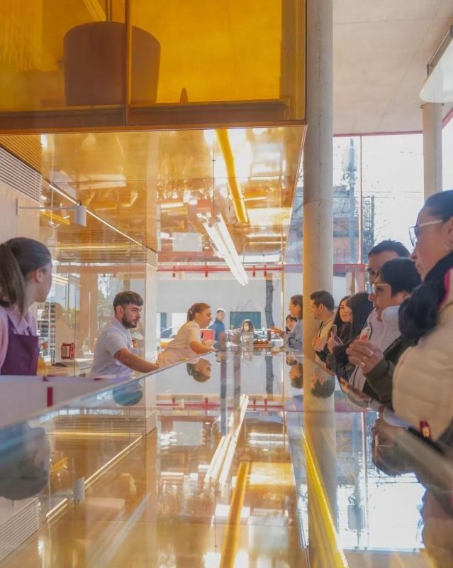 Dentro del local hay una heladera de 15 metros de largo repleta de delicias como macarons, chocolates, trufas, minitortas, tortas, panes artesanales y facturas, y a la salida hay una florería y un patio con unas pocas mesas para sentarse, ya que el fuerte es el formato take away.