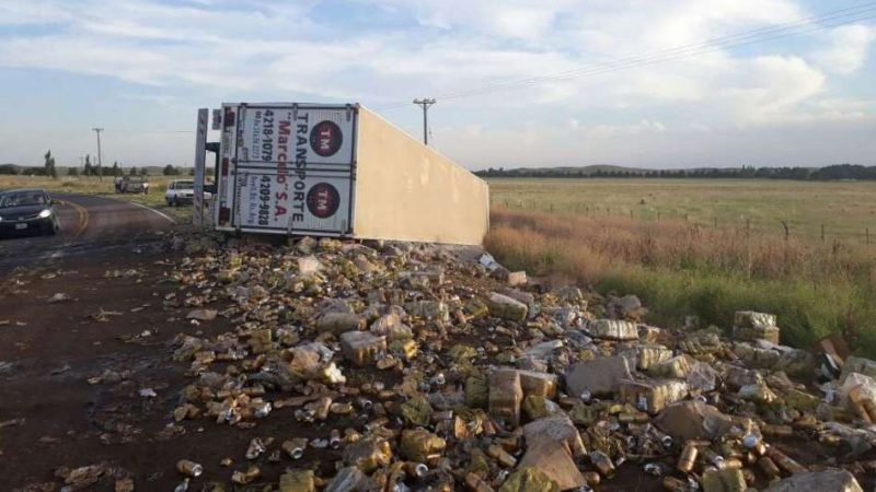 La Pampa: volcó un camión con latas de cervezas y los automovilistas lo saquearon por completo