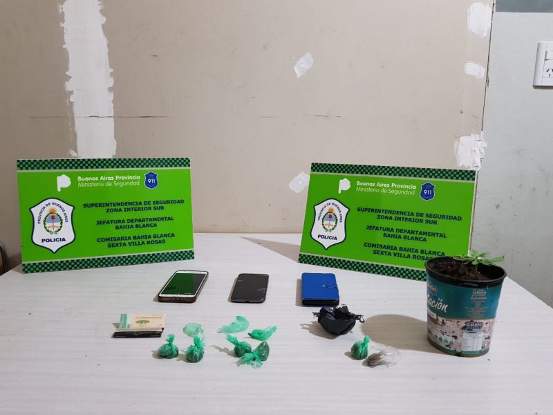 Se supo que en la casa ubicada en Teniente Farías 3064 los efectivos encontraron seis envoltorios de nylon de color verde con marihuana molida, once recortes de nylon y una maceta con dos plantas de marihuana.