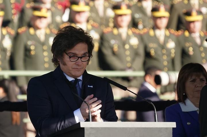 “Durante años la política utilizó a las Fuerzas Armadas como un chivo expiatorio para justificar la reducción del gasto en defensa bajo el argumento de que los uniformados eran los malos y los grandes culpables de la decadencia nacional. La política desatendió las necesidades del país ante las nuevas amenazas que surgían a nivel global”, apuntó el presidente Javier Milei.