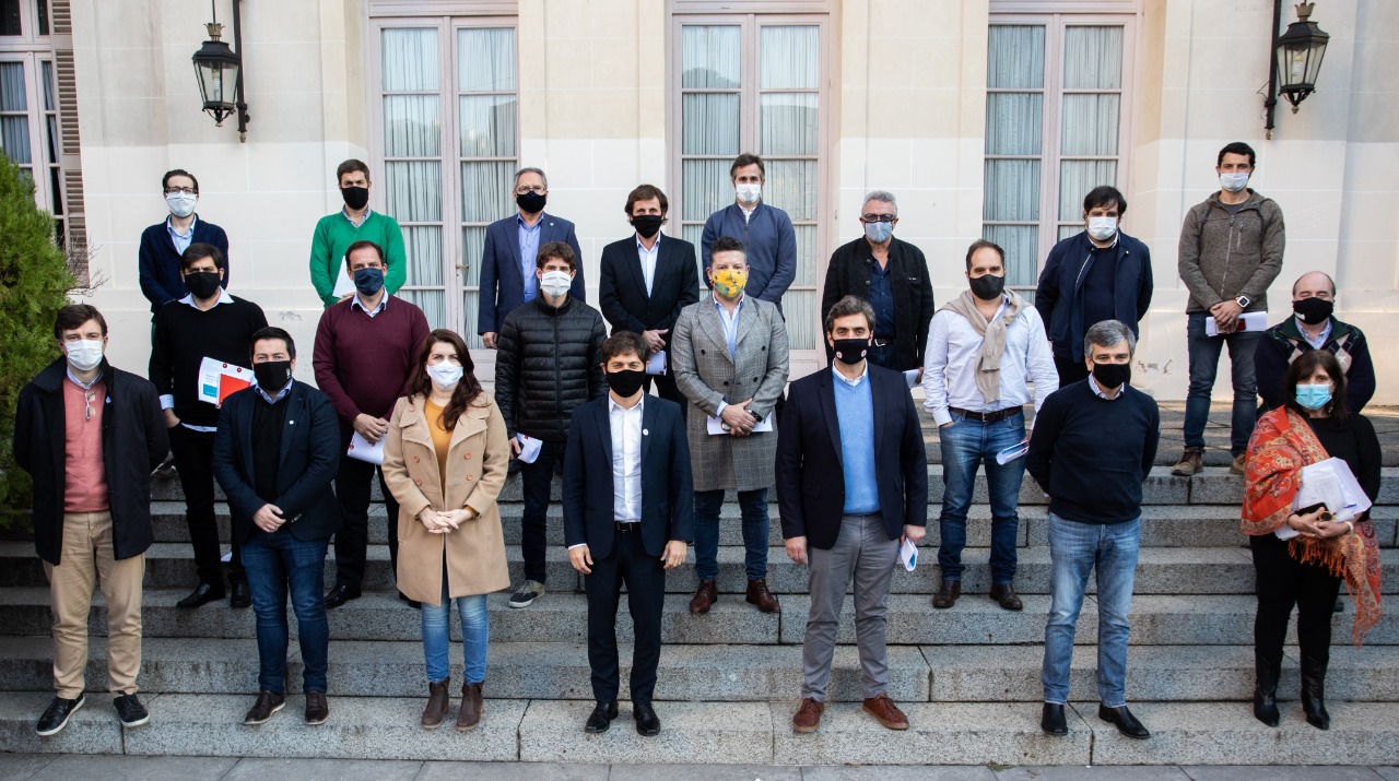 Además, el Gobernador recibió este mediodía en La Plata a intendentes de la primera sección electoral para analizar la situación epidemiológica y financiera de cada distrito. Estuvo acompañado por el jefe de Gabinete, Carlos Bianco, el secretario General, Federico Thea, el ministro de Infraestructura y Servicios Públicos, Agustín Simone, y la ministra de Gobierno, Teresa García.