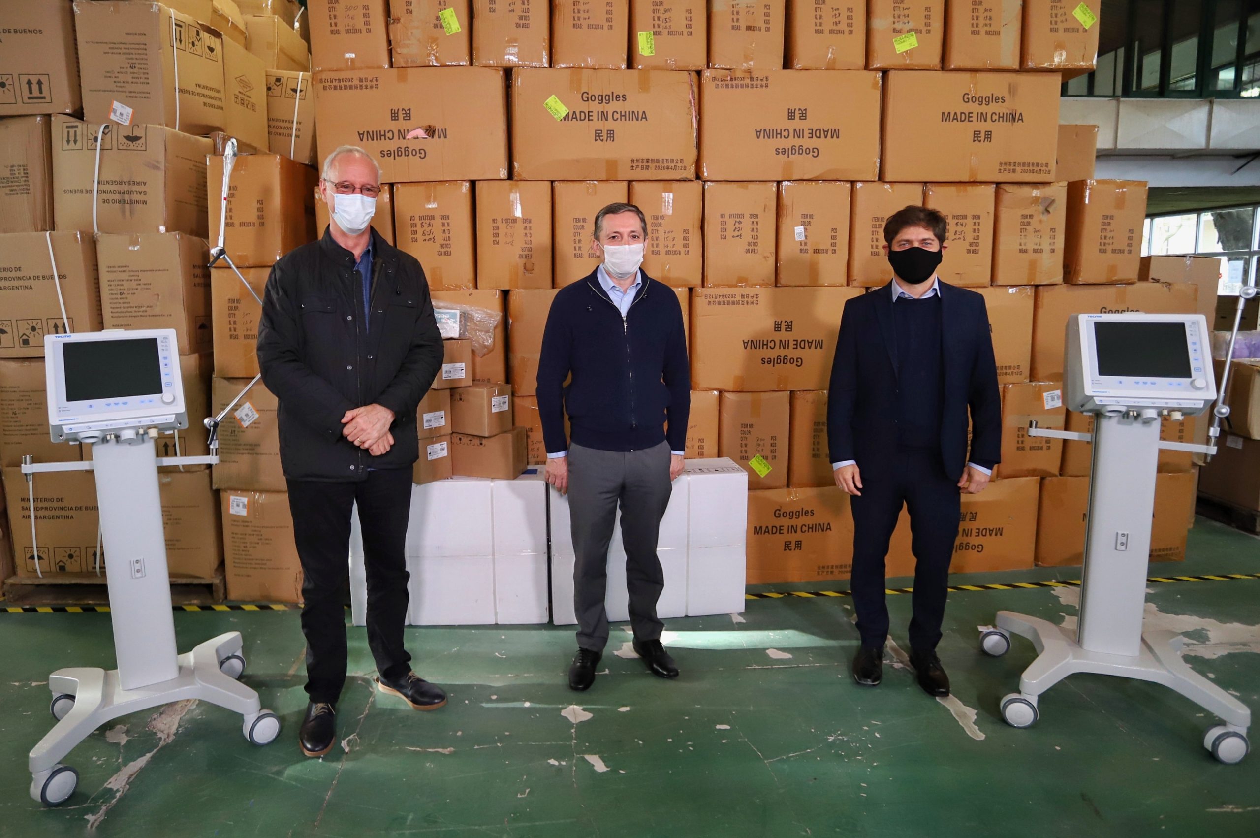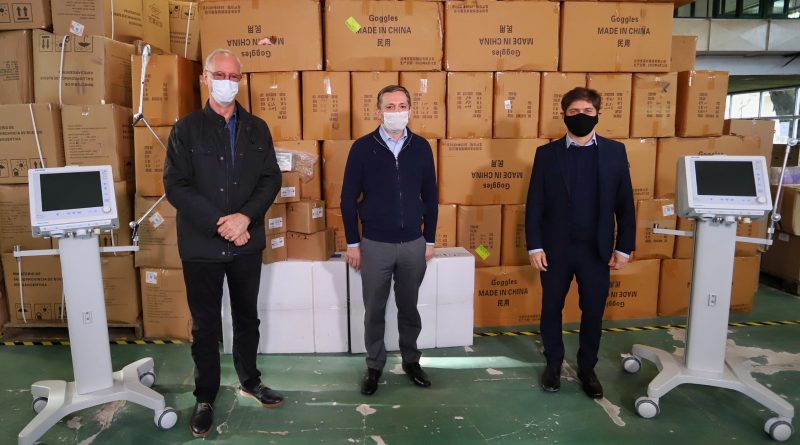 El gobernador de la provincia de Buenos Aires, Axel Kicillof, entregó siete nuevos respiradores, catorce bombas de infusión y cuatro monitores para el municipio de Esteban Echeverría, en marco de la pandemia de Covid-19. Fueron recibidos por el intendente Fernando Gray y estuvo acompañado por el ministro de Salud bonaerense, Daniel Gollán.