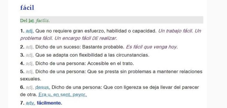 La Real Academia Española (RAE) modificó una de las acepciones más controversiales de su diccionario. A partir de ahora, en la definición del adjetivo “fácil” no se referirá más a “una mujer que se presta sin problemas a mantener relaciones sexuales”. Cambió el término machista por “persona”, según informaron fuentes de la histórica institución.