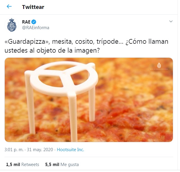 La Real Academia Española (RAE) consultó a través de su cuenta de Twitter cómo llama la gente al “cosito de la pizza”. El pequeño trípode que viene en el centro de las pizzas parecería no tener un nombre concreto.